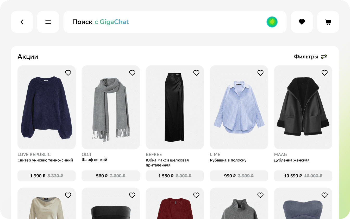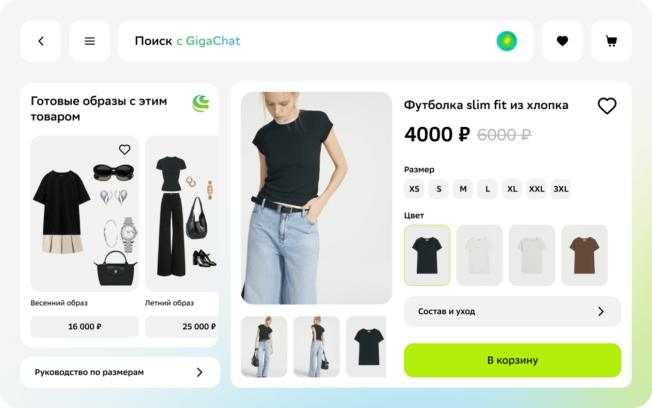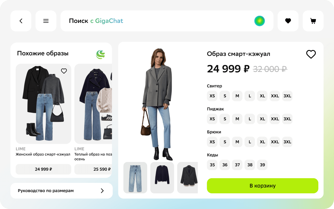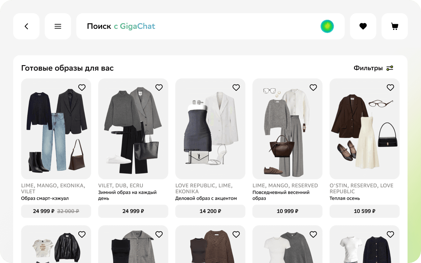 Подборка готовых образов на основе предыдущих покупок и товаров из избранного