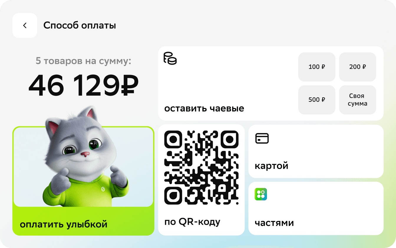 Все безналичные виды оплаты прямо на планшете